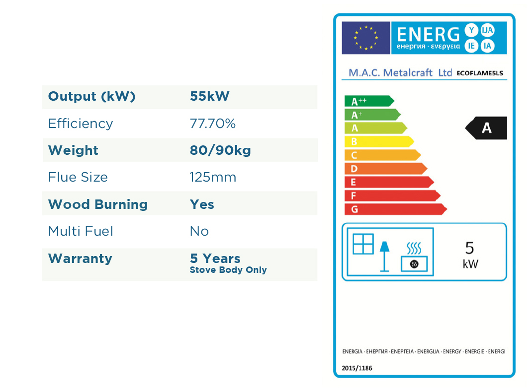 The Ecoflame range of cylindrical wood burning stoves is at the forefront of stove design, not to mention their clean burning credentials. They have an impressive A Energy rating with 77.7% efficiency, and all three are eco-design 2022 rated.