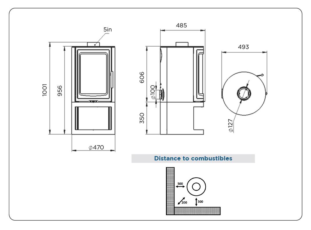 Ecoflame cylindrical stoves come as standard with our uniquely designed heavy duty cast iron door and 125mm outlet. The stove can be installed using a direct air kit.