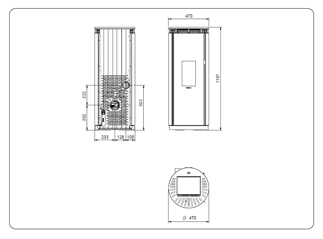 • Double door: Flat ceramic glass inside. Curved tempered outer glass