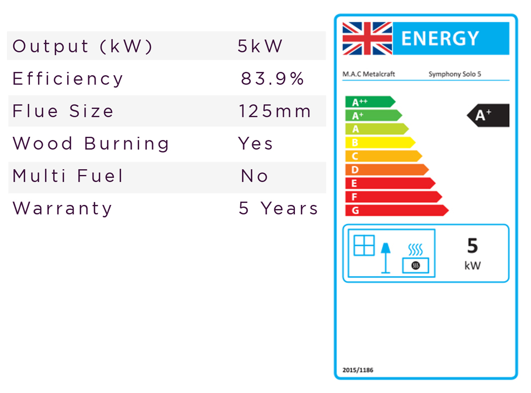 With a 5 year warranty on the stove body. The Symphony Solo comes complete with the new SCANTAG system which, with the use of a QR code, has many useful functions including the stove user manuals, how to videos and the facility to record annual sweep and service records.